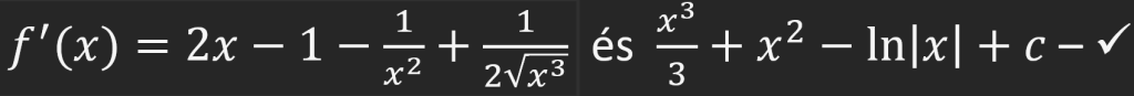 Deriválási és integrálási feladatok, forrás: saját kép